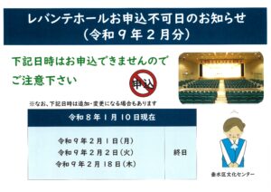 平素は、垂水区文化センターをご利用いただきありがとうございます。