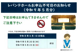 平素は、垂水区文化センターをご利用いただきありがとうございます。