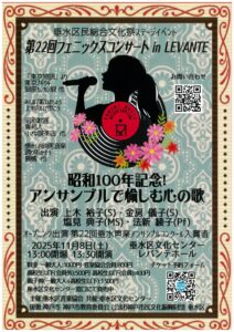 【内 容】 昭和100年記念!アンサンブルで愉しむ心の歌