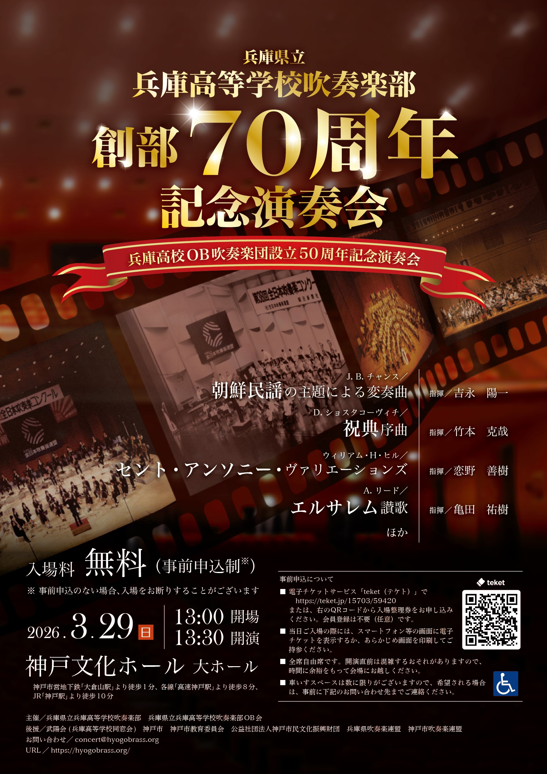 入場料:無料・自由席 | お問い合わせ: 兵庫県立神戸高等学校吹奏楽部 078-861-0434 |