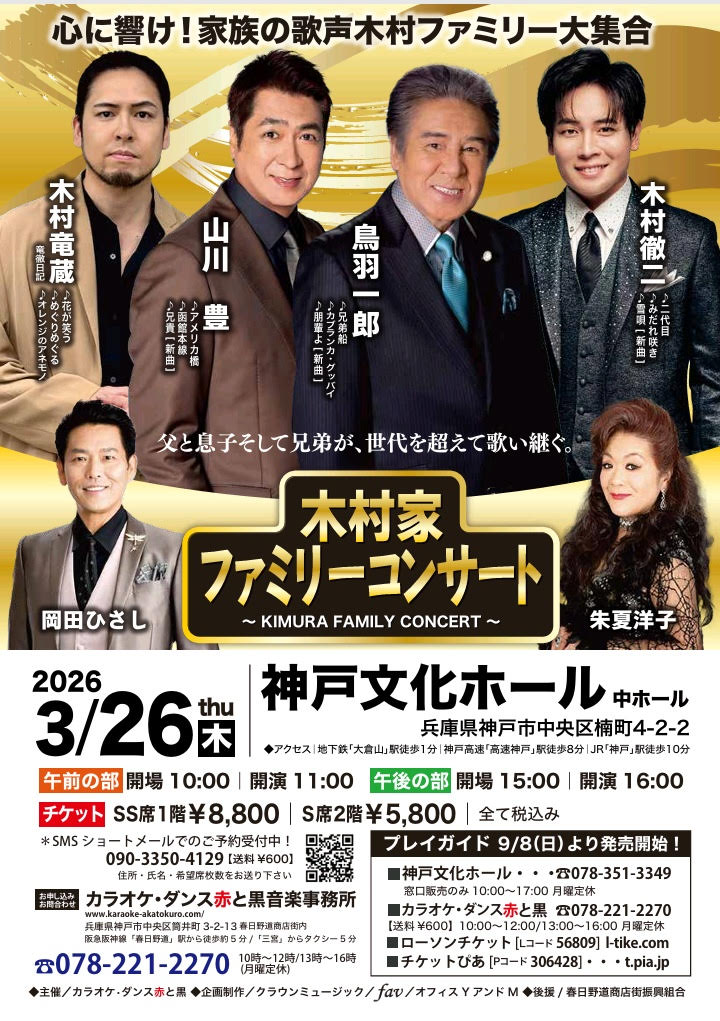 入場料:SS席1階8,800円、S席2階5,800円 指定席・整理券 ※未就学児入場不可 |
