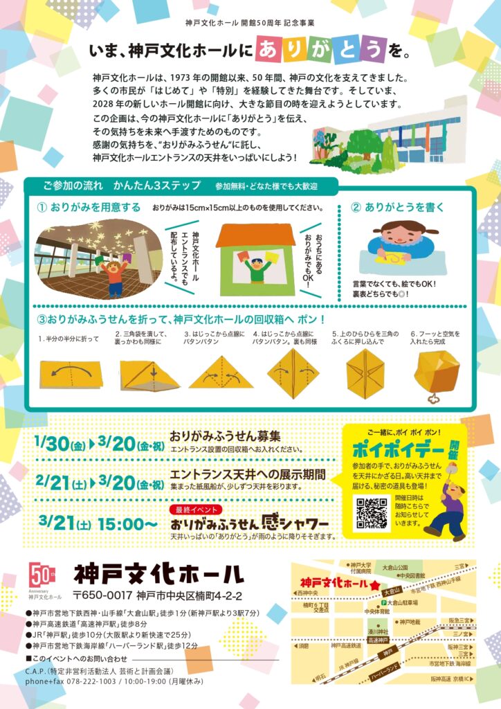 「ありがとう!おりがみふうせん大作戦」は、現在の神戸文化ホールへ感謝の気持ちを届け、