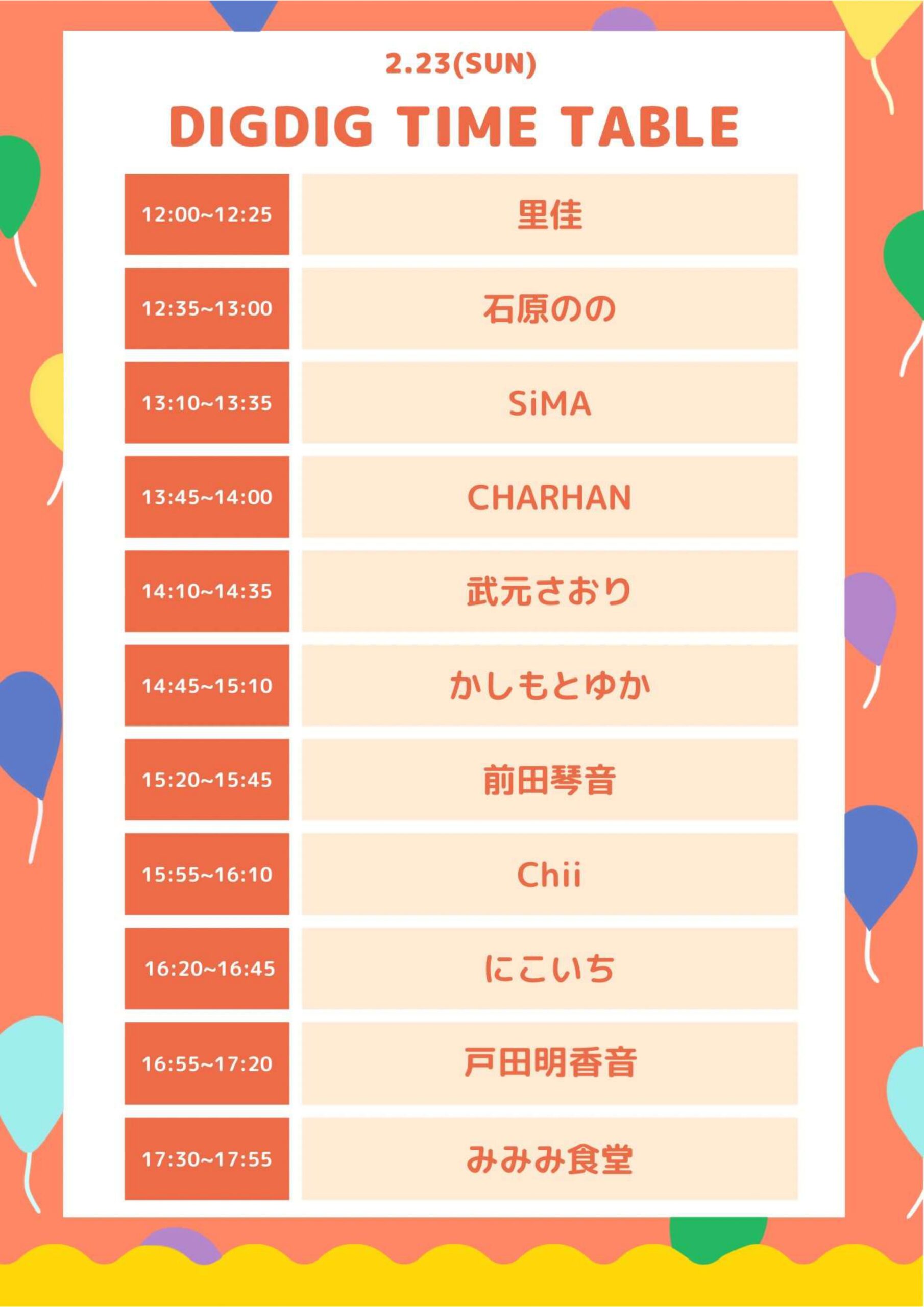 ※各アーティストの出演時間は「まちなか市場-DIGDIG- フライヤー・タイムテーブル」をご覧ください。