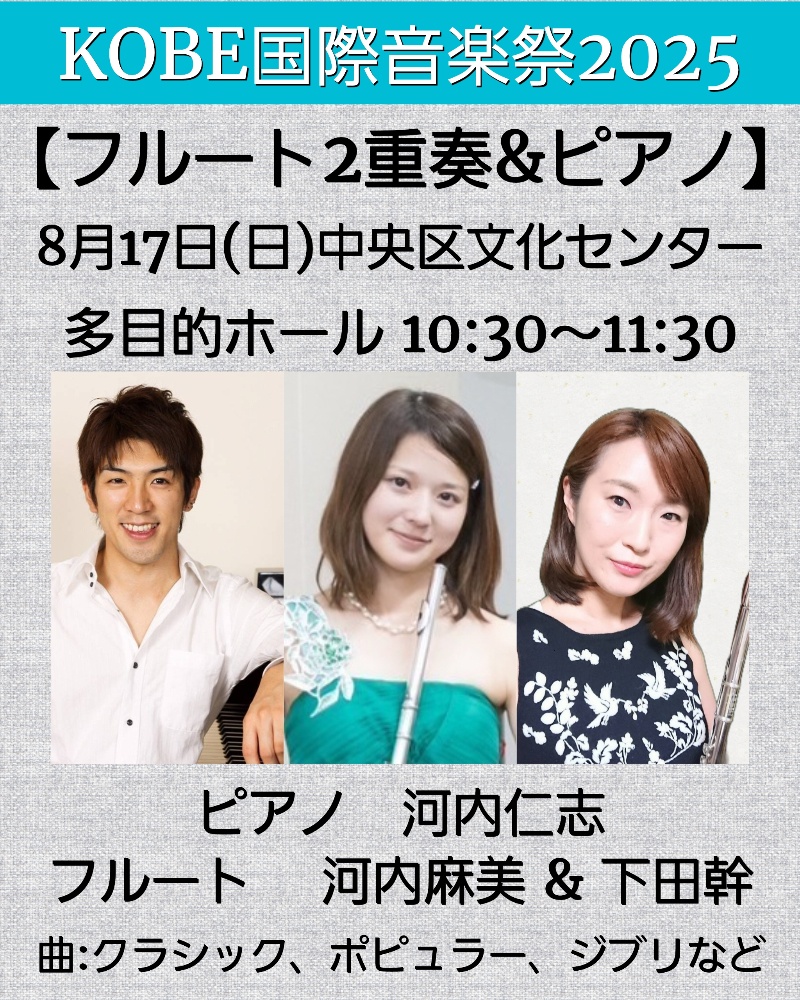 | 出演者 | 河内麻美(フルート)、下田幹(フルート)、河内仁志(ピアノ) |
