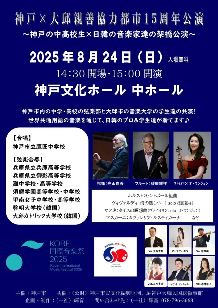 | 主催/共催 | 主催 / 神戸市 共催 / 公益財団法人神戸市民文化振興財団、駐神戸韓国総領事館 企画・制作 / 一般社団法人輝音 |