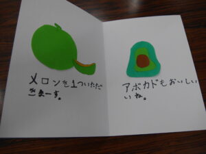 絵本づくりに向けて、テーマを「くだもの」に絞り、物語のアイデアを考える時間を設けました。