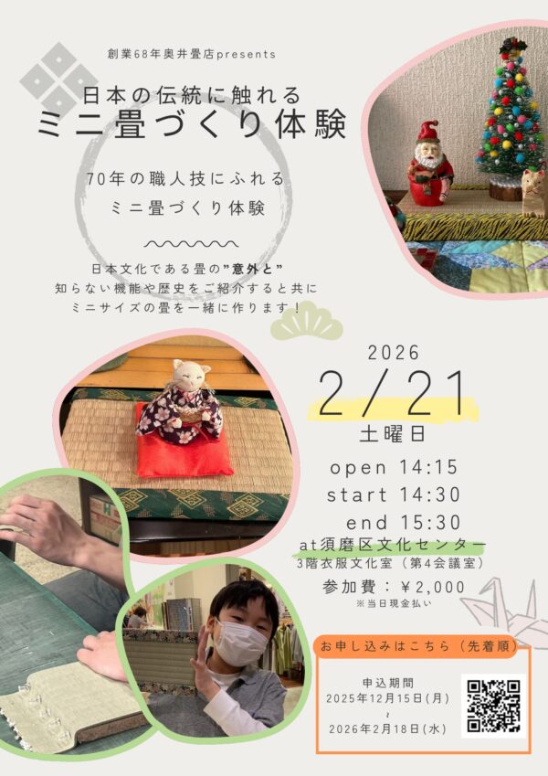 【12/15~受付】 日本の伝統に触れる ミニ畳づくり体験